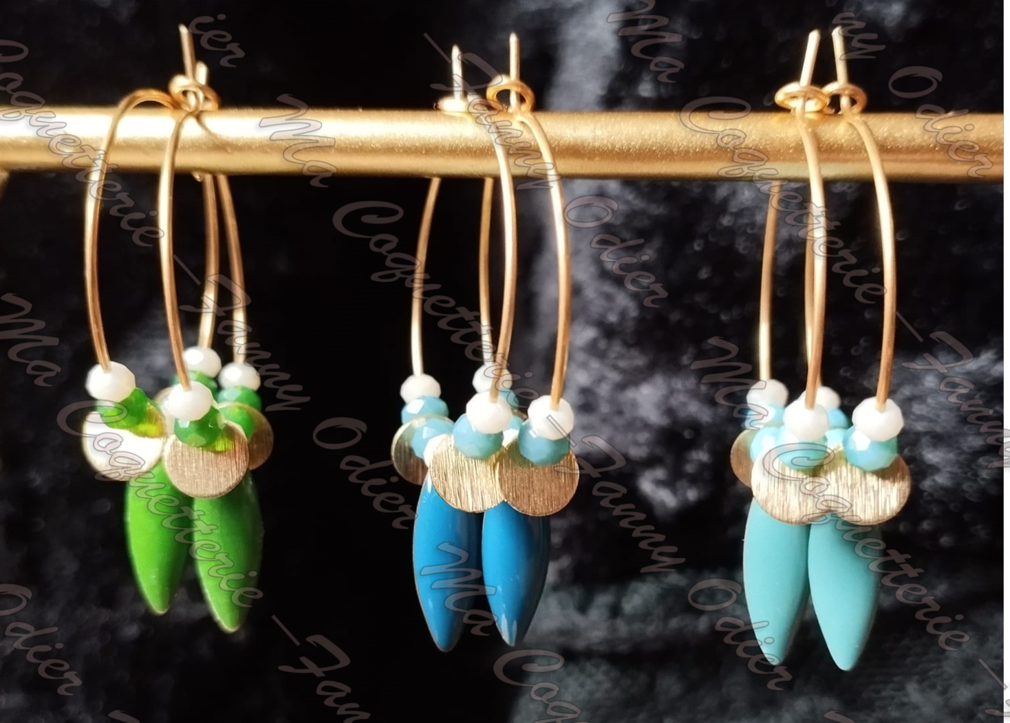 Ajoutez une touche de raffinement et de couleur à votre look avec mes Créoles, des boucles d'oreilles délicates alliant finesse et modernité. Composées d'acier inoxydable, de perles de verre et de breloques en émail, elles apportent une touche lumineuse et élégante à votre tenue. Disponibles en plusieurs tailles et coloris, elles s’adaptent à toutes vos envies.