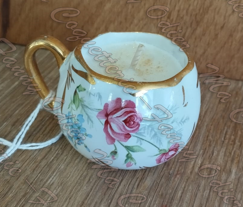 Petite mais précieuse, cette tasse fleurie est une pièce rare qui renferme une bougie à la cire végétale coulée à la main.